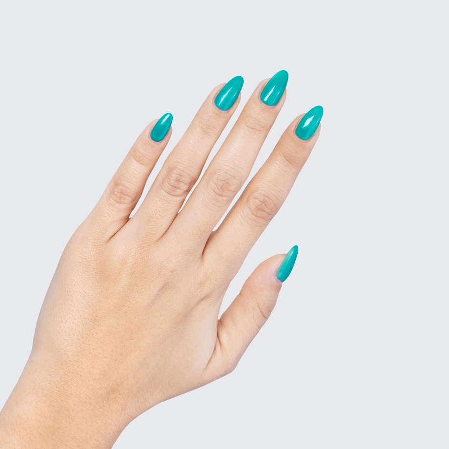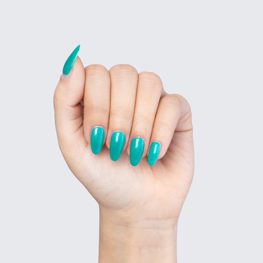 There’s never a dull moment with the aqua sheen of this bright teal polish.