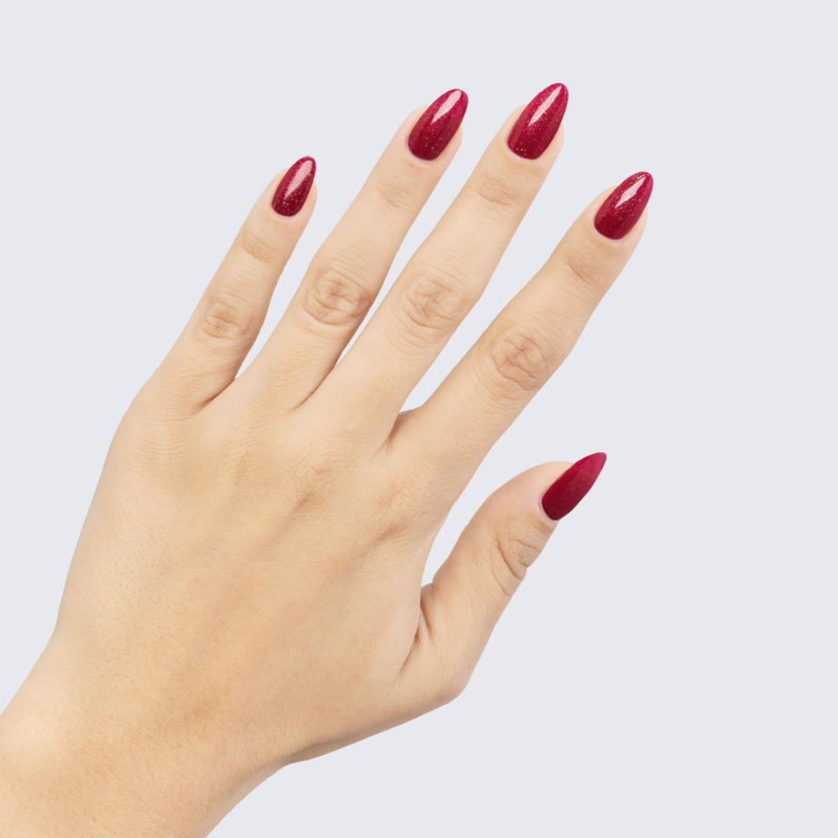 Make a sparkling entrance with this dark wine-red polish.