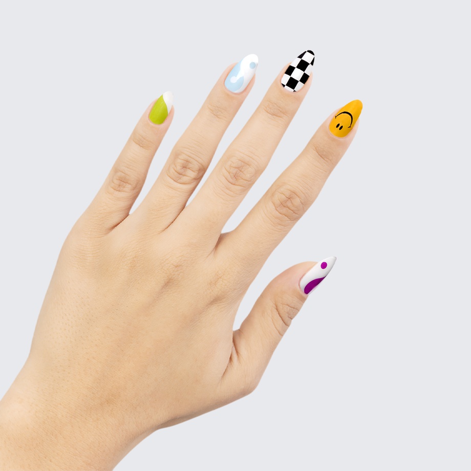 Our GLAM & GO gel nail wraps ensure that no matter how complex your chosen nail design, the application process remains incredibly simple. Our GLAM & GO gel nail wraps require no glue, base coat, or top coat—just peel them off the packaging, apply them to your nail, trim to size, cure twice, and voilà!